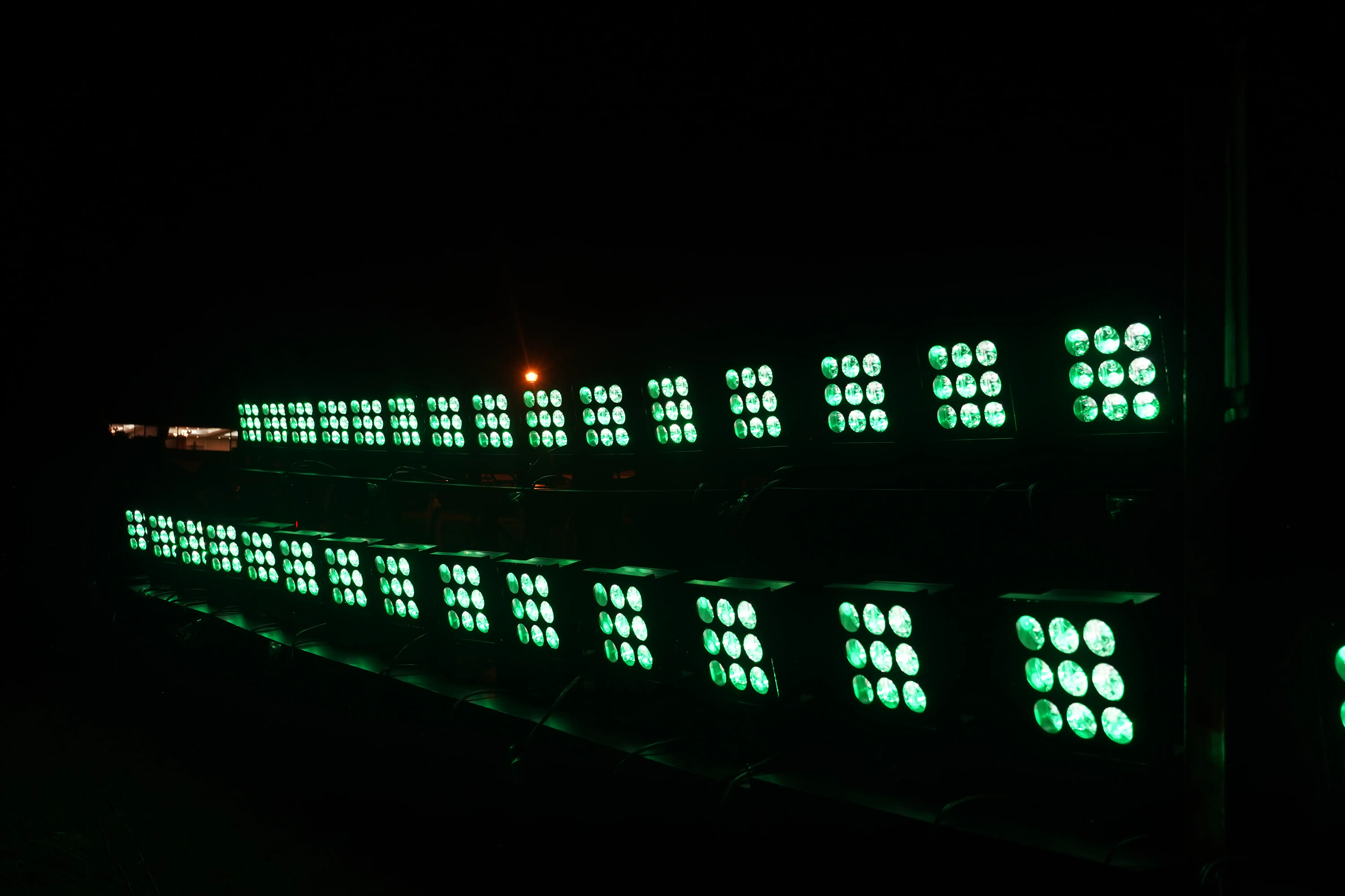 为确保安全并提供夜间通行指引,步道与树木采用低位道路照明及LEDSFOCUS PRO FULLCOLOR灯具进行照明。此外,LEDS HIGHLIGHT灯具通过同步控制,在地面依次投射箭头标识,清晰指示场馆内部路径与方向,增强引导效果。在需谨慎行走的斜坡区域,LEDSFOCUS LINE灯具以线性光束照亮路径两侧,使暗区斜坡亦清晰可见。