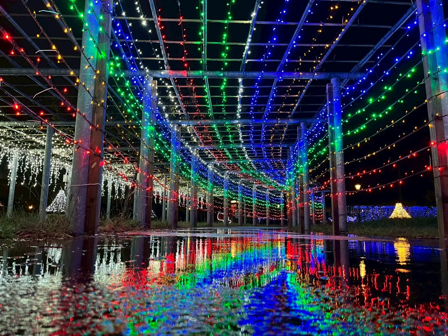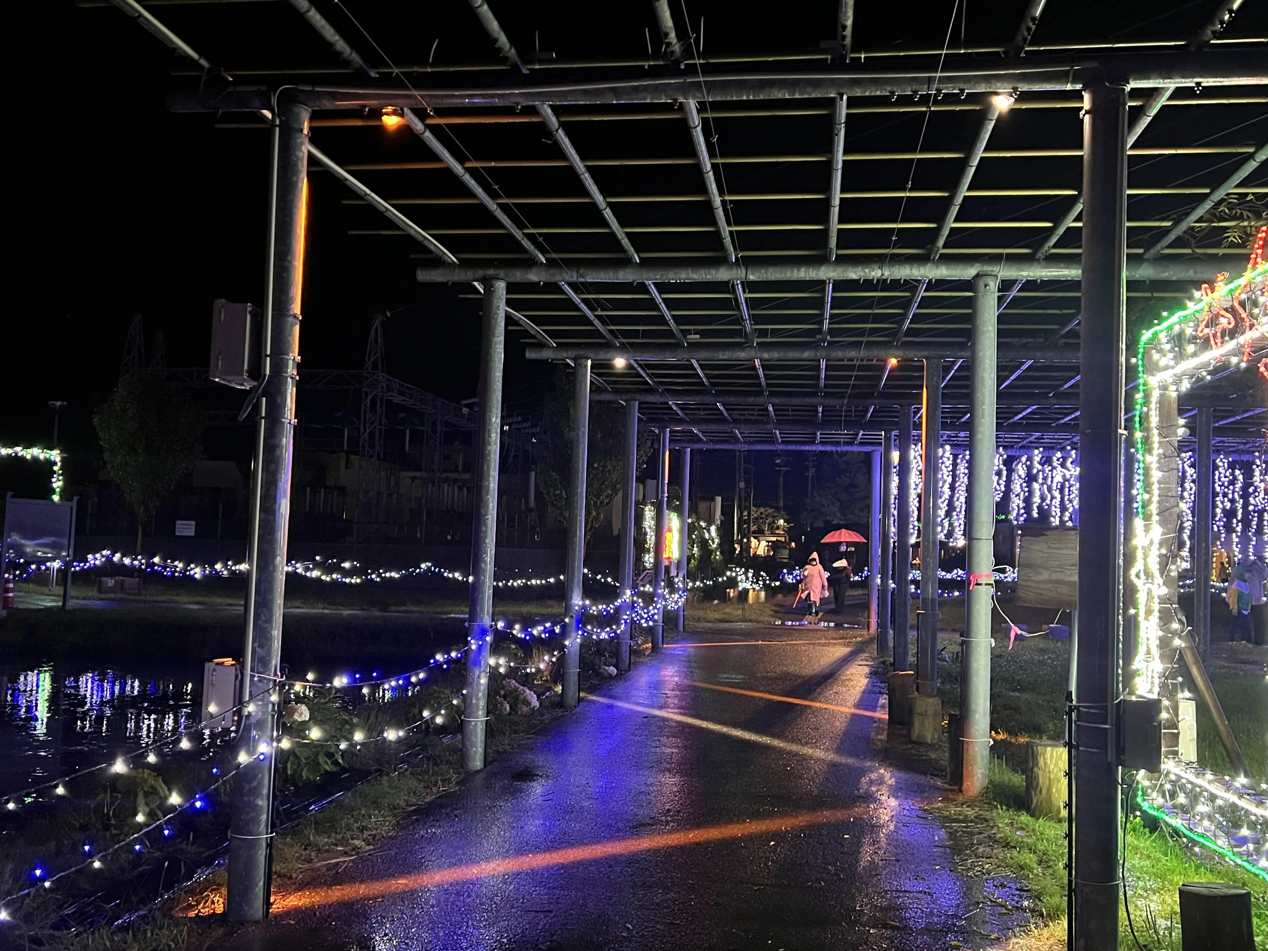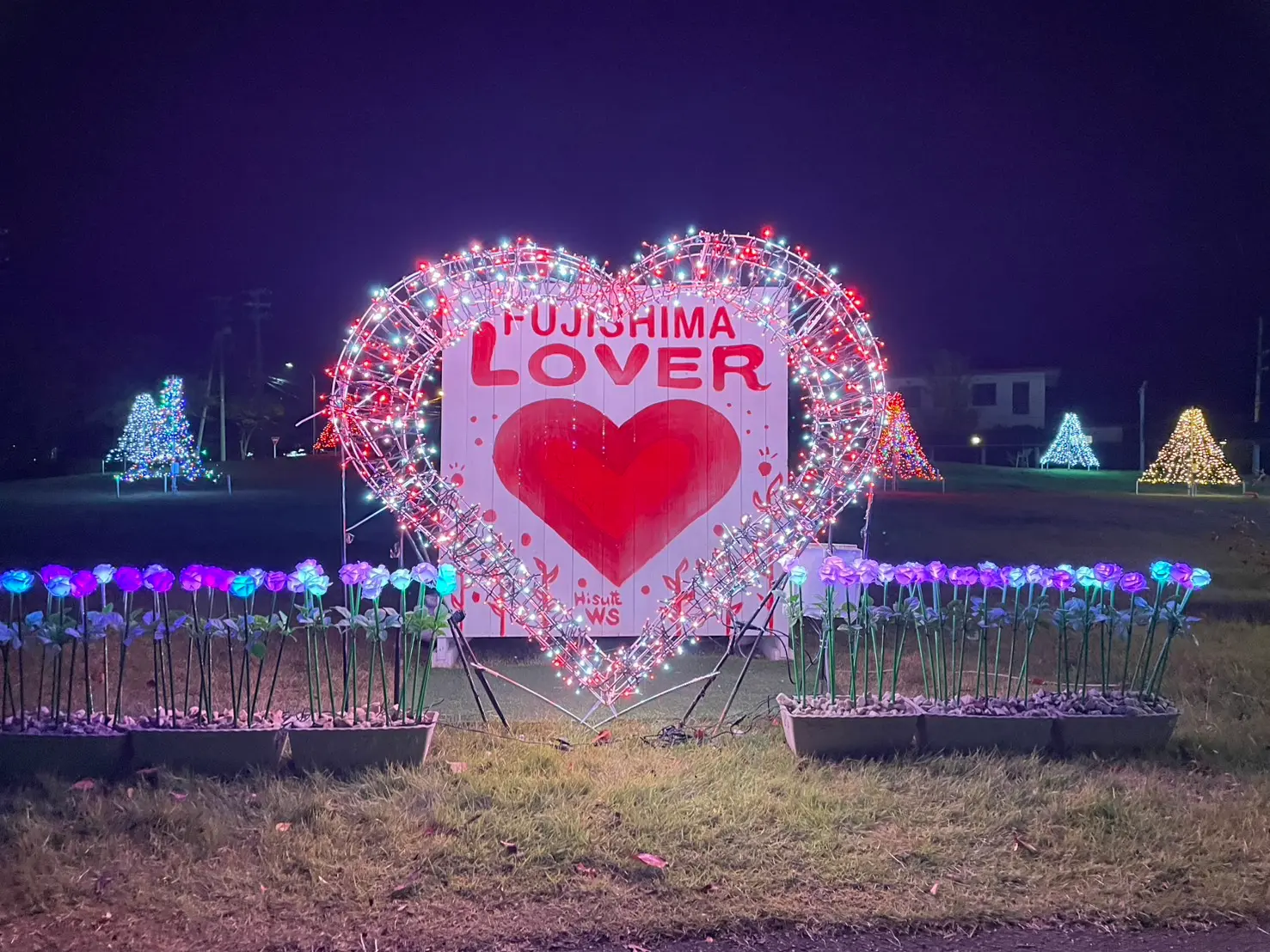 どこでも大規模なイルミネーションはあります。でも藤島でしかできない、温かいイルミネーションを見に来てほしい。県外からもぜひ来てください。手作りしたオリジナルのイルミネーションや大藤棚を利用した藤の花のイルミネーション、8メートルの高さのツリーなど、公園内はキラキラがいっぱいで、全部がおすすめしたいフォトスポットです!雨の日の水に反射する光や、雪の中で見るイルミネーションも格別です!!