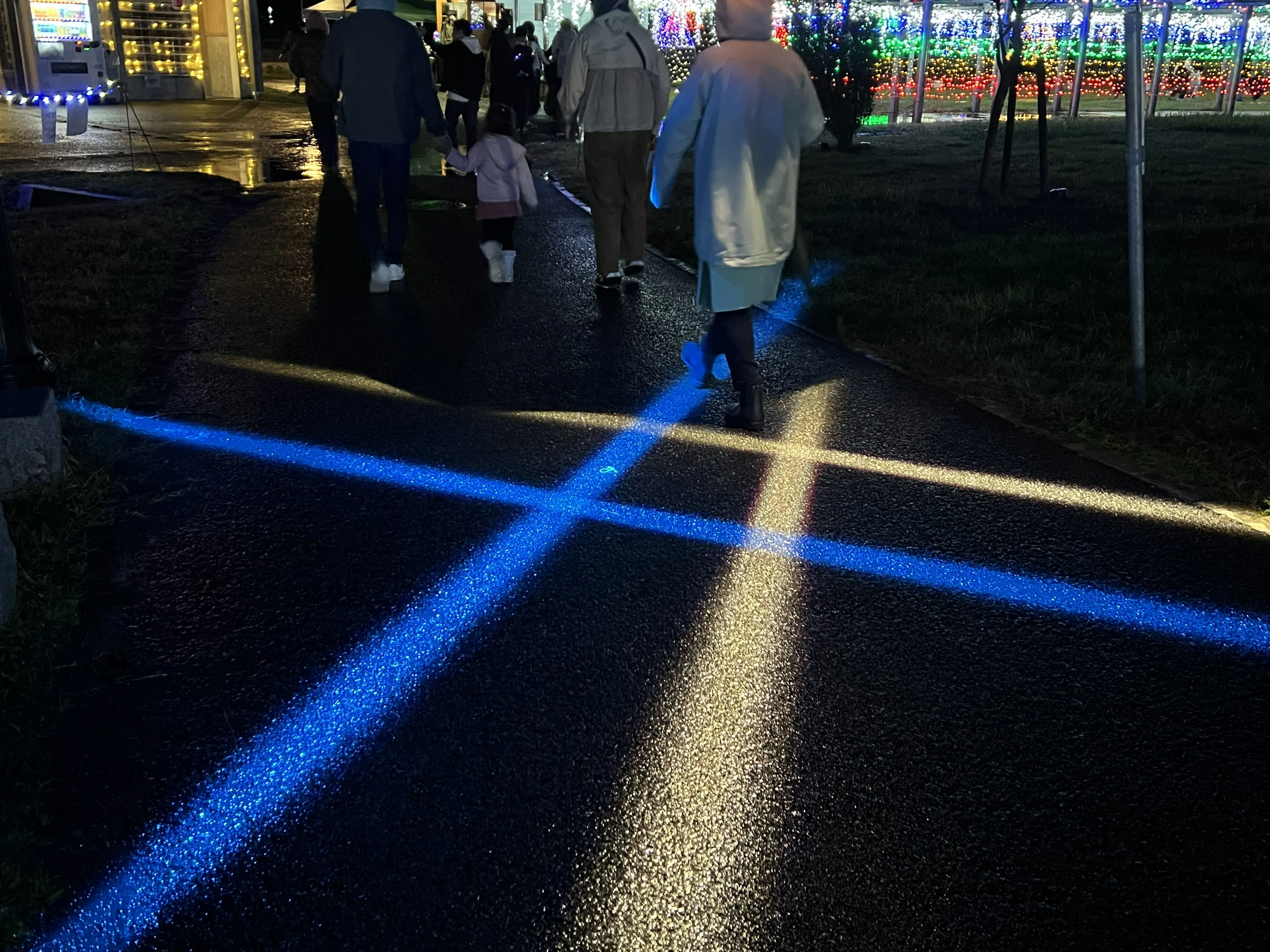 当社は今年度からこのイベントに参加し、藤島庁舎駐車場・藤島庁舎駐車場からイルミネーション会場である「Hisu花」までの通路、公園内園路、東田川文化記念館のライトアップや光による誘導表示を担当しました。