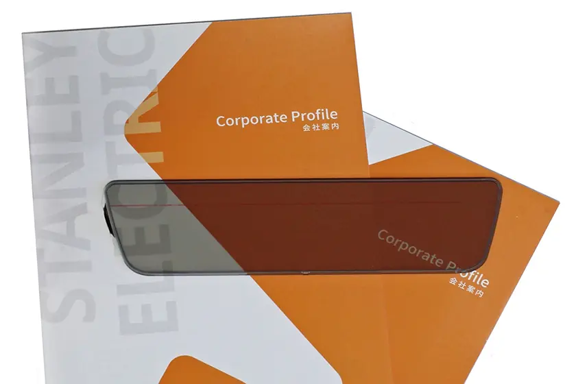 ミラーLCDの透過率が高いと、下にあるパンフレットが透けて見えるようになります。