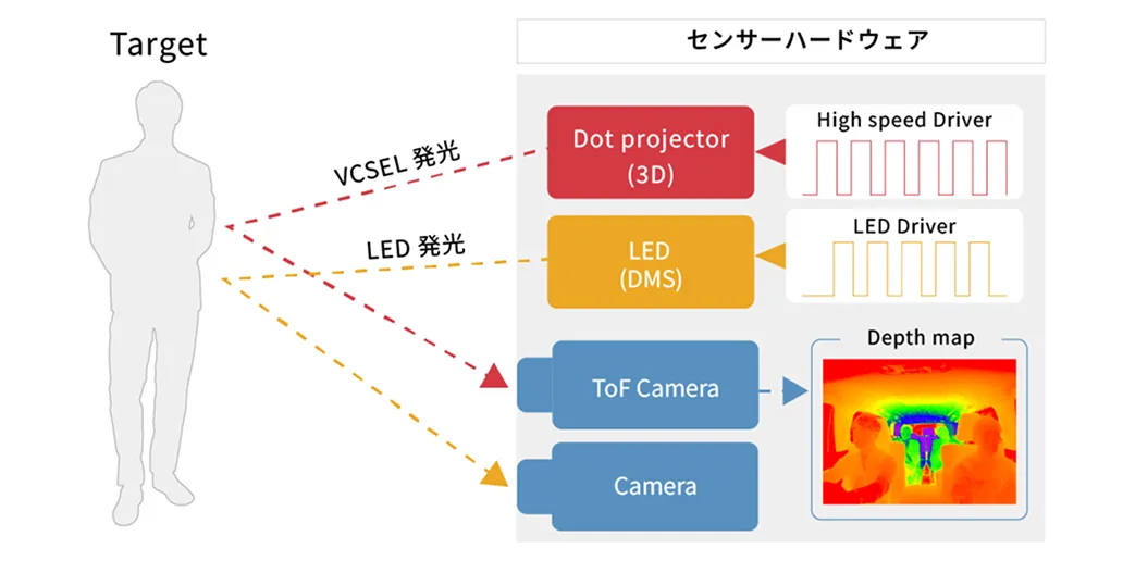 - DMSで使用しているドライバー及びセンサーと同一のものを使って3D検知が可能