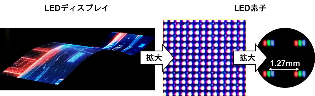 LEDディスプレイ高精細で滑らかな映像表現を実現するため、極小のLEDを高密度に配置する必要があり、「COB技術」が採用されています。