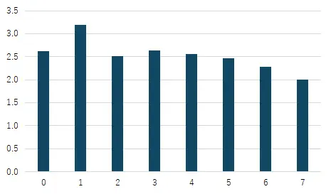 ウェルスタ7の推進状況の評価にあたっては、各項目の実践状況を基に指標化を行っています。各項目が実践できていれば各1点、実践できていなければ各0点とし、合計0点~7点のウェルスタ7スコアを算出し、全社および各事業所の推進状況をモニタリングしています。(2023年度下期に本指標を定め、2024年度から施策を本格展開、今後検証・改善。)